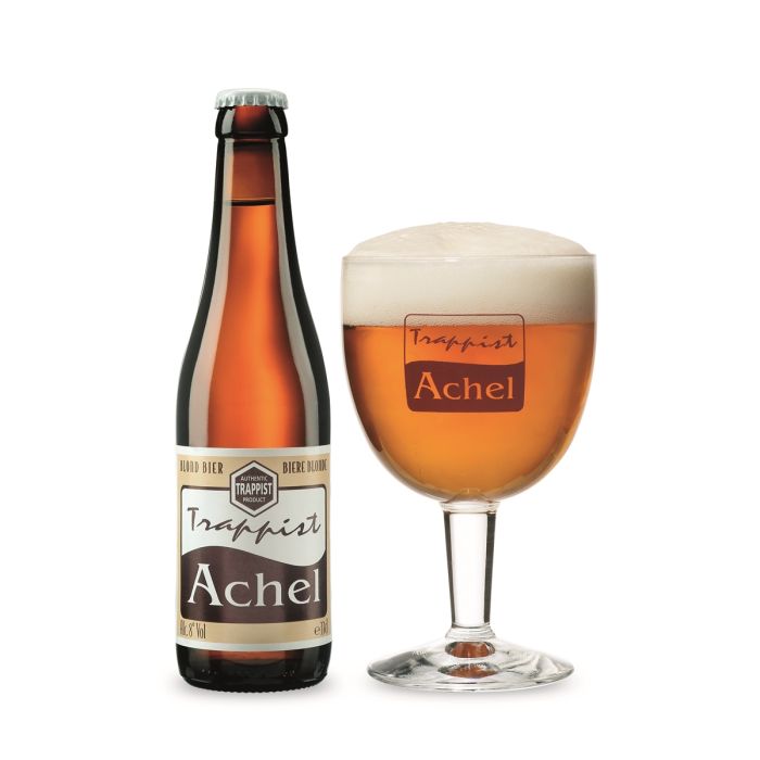 La Achel Blonde est une bière trappiste brassée en Belgique. Cette Pale Ale a une robe ambrée avec une fine mousse beige aux arômes de fruits exotiques et de malt.