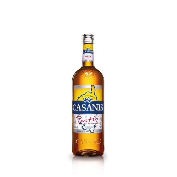 Casanis est un pastis de Marseille élaboré à partir de la lente distillation d'anis vert et de badiane (anis étoilé) puis de l'infusion de la réglisse.Cet assemblage est ensuite mélangé à différentes plantes aromatiques selon une recette secrète