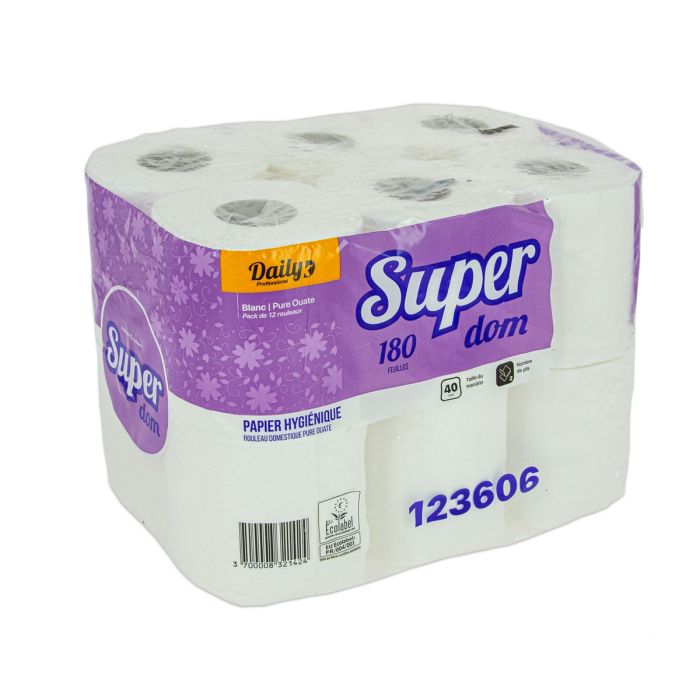 Papier Hygiène Pure ouate gaufré collé - couleur blanc - 2 plis - 96 rouleaux - 180 feuilles - 15,5g/m² - 9,25cm x 19,8cm - mandrin de diamètre 3,8cm